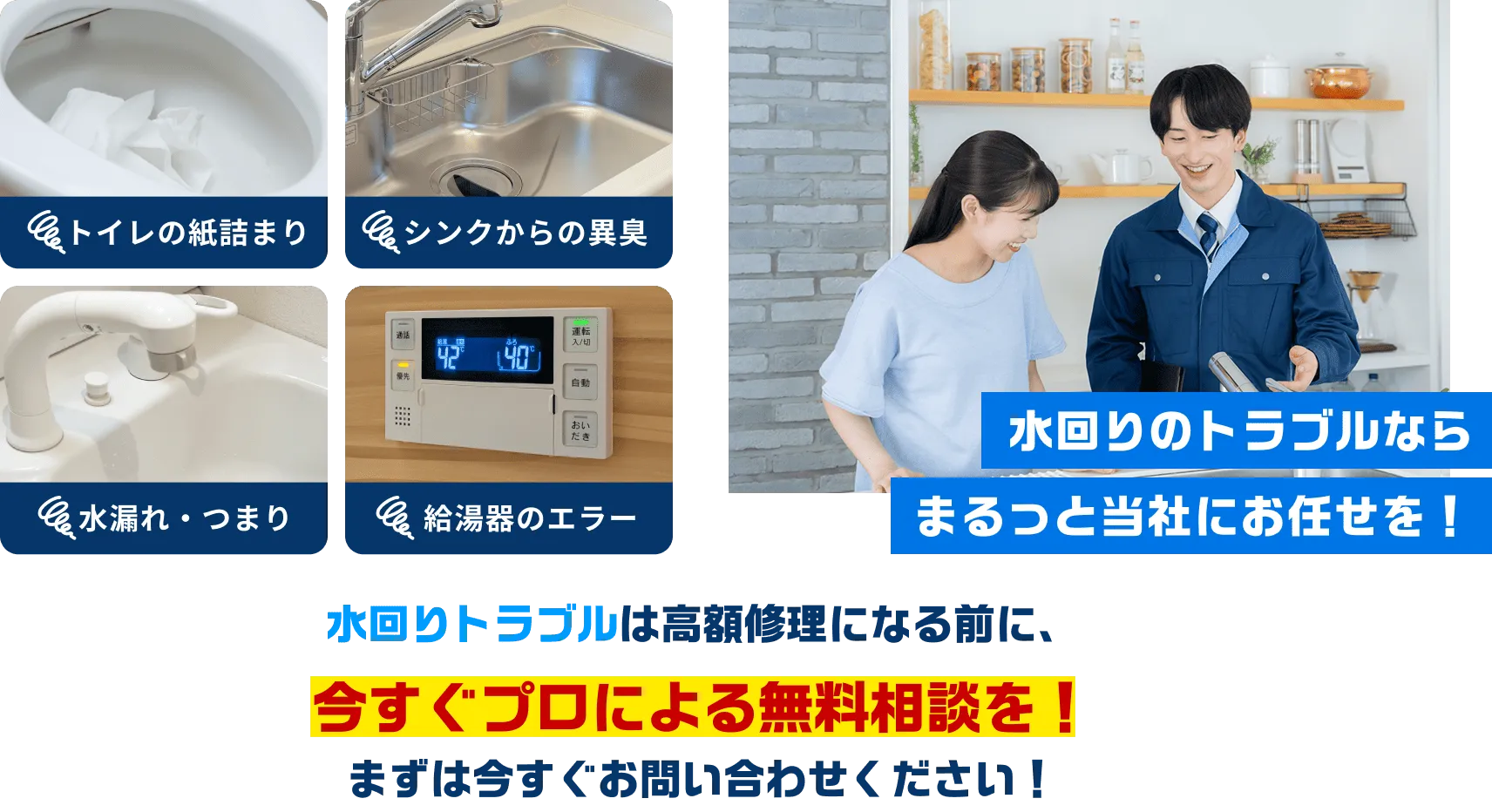 - 給水管・排水管など見えない場所のトラブルも対応してもらえますか?