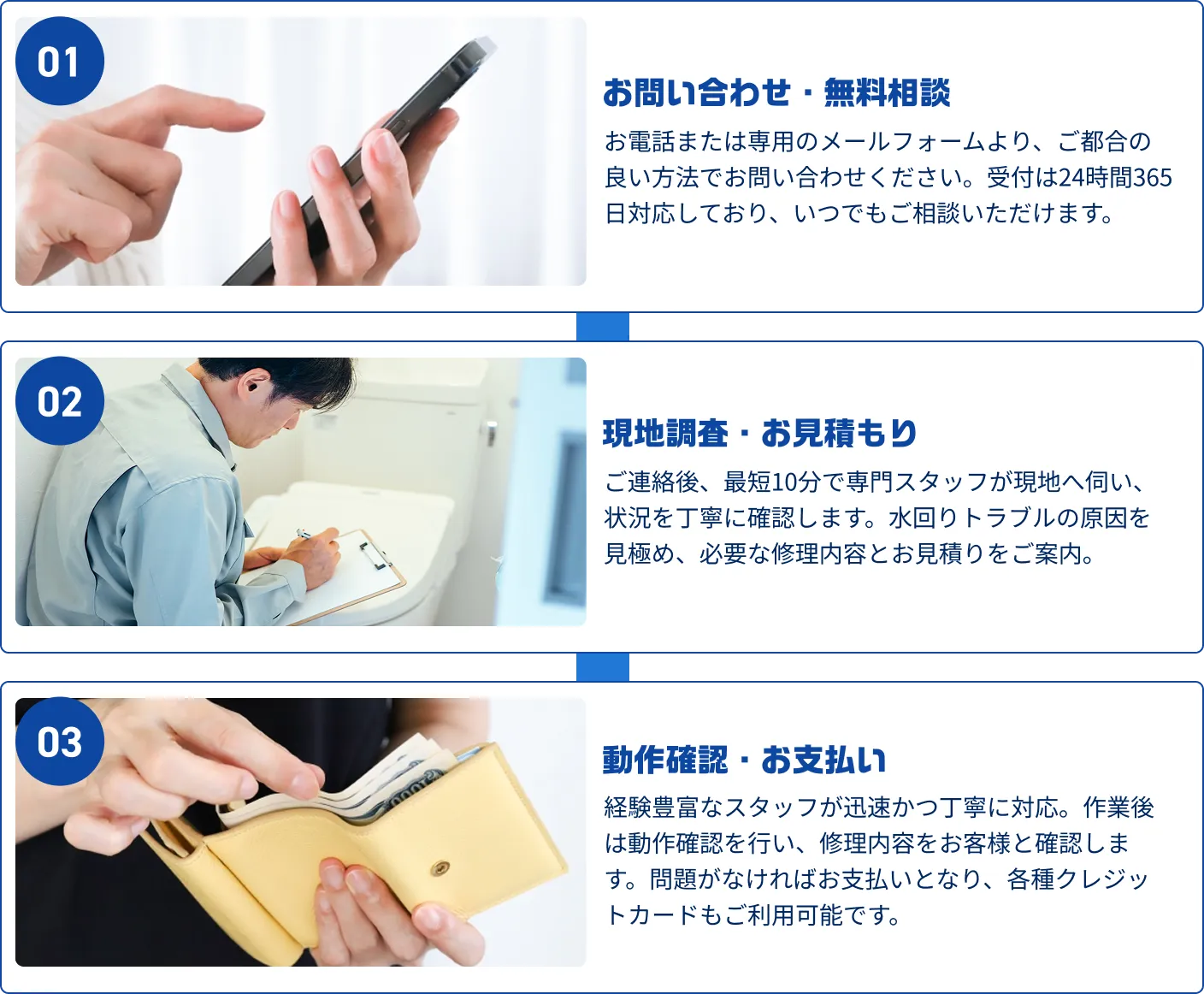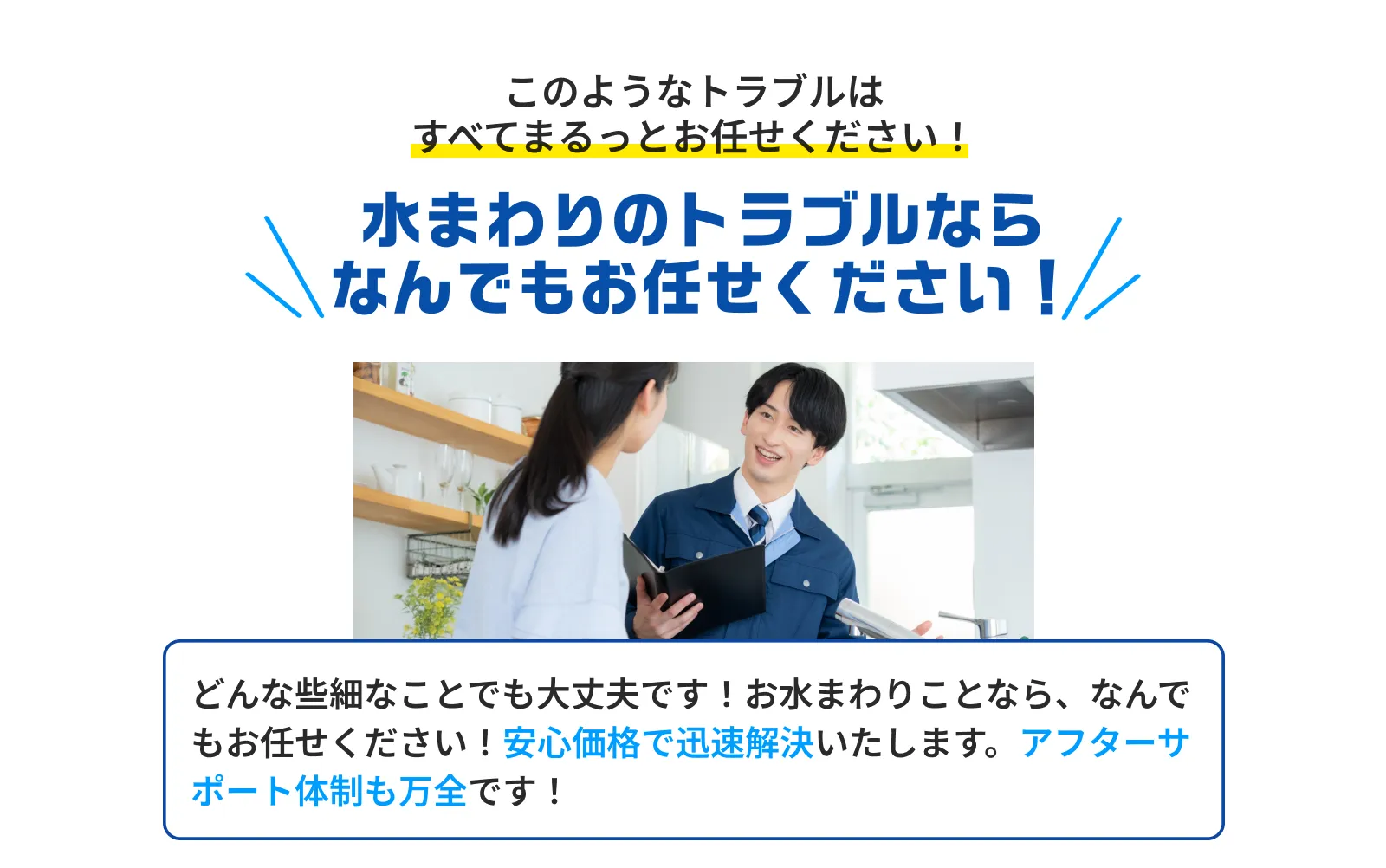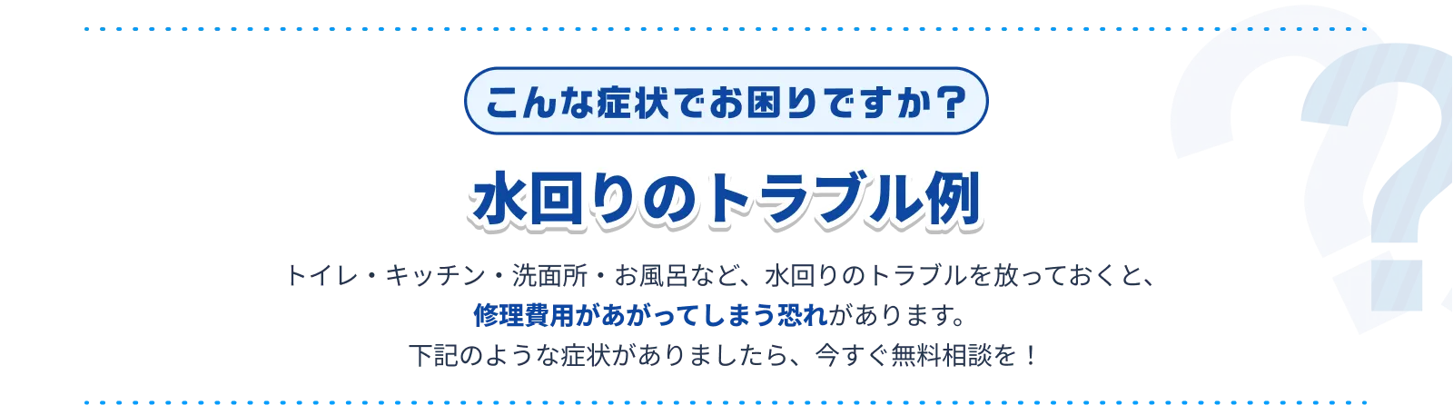 - 給水管・排水管など見えない場所のトラブルも対応してもらえますか?